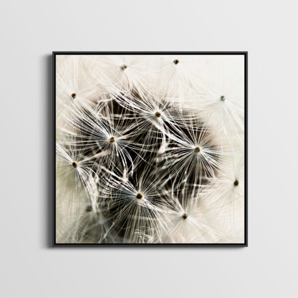 The ephemeral beauty of dandelion flower achenes. Each achene, delicately suspended from its fine, downy aigrette, seems ready to fly away with the slightest breath of wind. Their delicate, light structure contrasts with the sharpness of the details captured, highlighting each filament and seed ready to be dispersed. The soft light highlights the fine, silky texture of the egrets, creating a delicate halo around each achene. These pure white, almost translucent wonders of nature evoke the fragility and fleeting beauty of plant life.