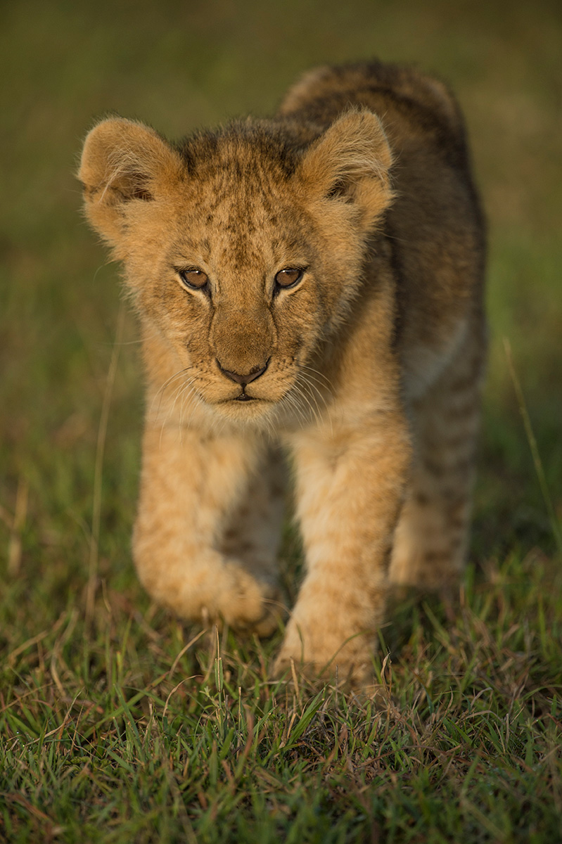 Lion (Panthera leo) It was with confident steps that this young rascal walked towards me.The presence of the lioness, not far away, gave him the necessary boldness.At this age, 6 to 8 weeks, they are totally dependent on their mother, but that doesn’t stop them from venturing away from the group to satisfy their insatiable curiosity.