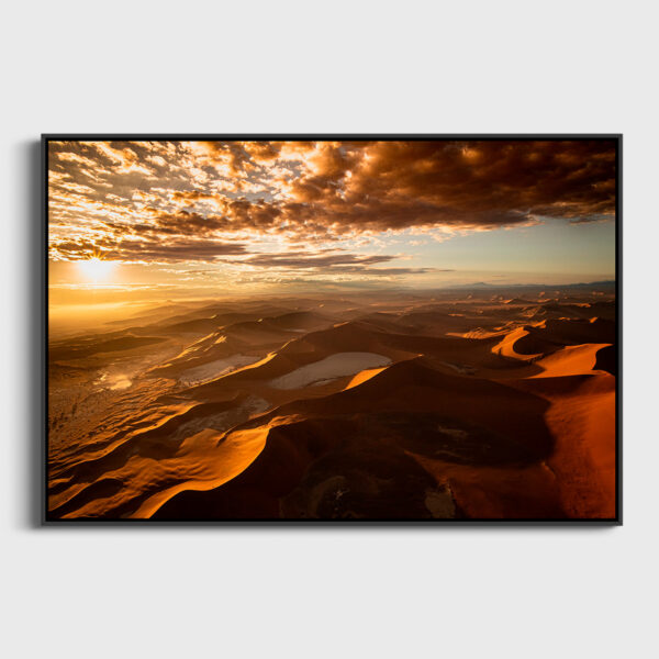 The print is mounted on a 2 mm Dibond panel and placed in the frame.