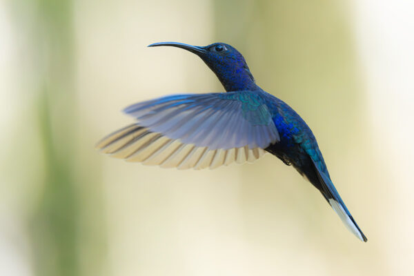 La grâce du colibri dans une magnifique lumière. Ces petits oiseaux sont très intelligents, par rapport à sa taille corporelle, le colibri possède le plus gros cerveau du monde des oiseaux.