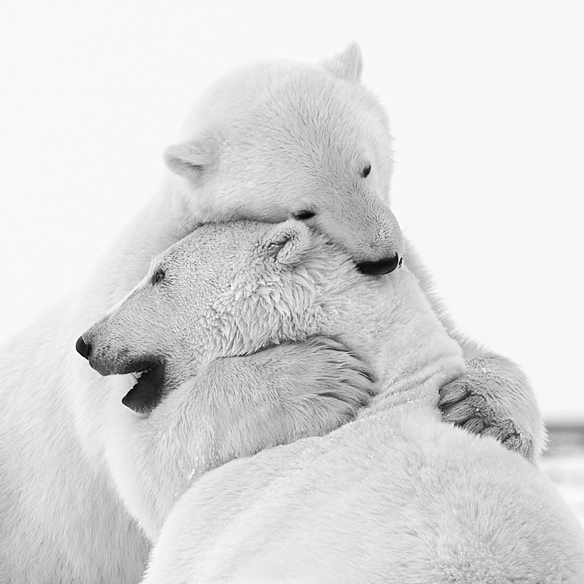 Les ours polaires se livrent rarement à des combats brutaux, mais ils prennent grand plaisir à jouer ensemble et ces jeux prennent parfois une apparence tendre, presque amoureuse. Une danse ludique et lourde, au cours de laquelle ils se mordillent le cou à tour de rôle, fait parfois tomber l’un d’eux sous l’impact, ses puissantes pattes s’agitant dans les airs, tandis que l’autre se précipite vers lui, la bouche grande ouverte. Ils se roulent alors sur le sol, s’amusant à se bousculer avant de se relever pour recommencer leur jeu.