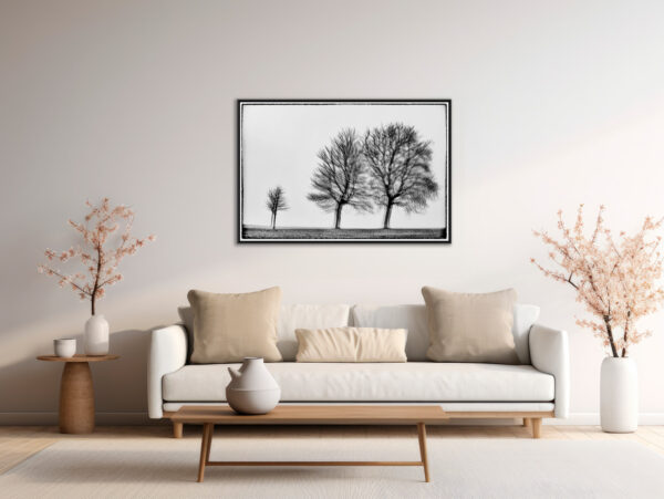 La « Série Glitches » est une collection de photographies artistiques en noir et blanc qui explore l’esthétique du glitch et de la distorsion visuelle. Dans cette série, le photographe capture des arbres nus en hiver qui bordent une route départementale, mais avec un twist fascinant, les arbres semblent se dédoubler dans une répétition hypnotique et déroutante. Chaque photo de la série présente une perspective unique de cette distorsion visuelle, créant une sensation de mouvement et de flou qui défie la réalité. Les arbres, normalement statiques et immuables, prennent une nouvelle vie dans cet univers glitché, où les contours se brouillent et se fondent les uns dans les autres. L’utilisation du noir et blanc ajoute une dimension supplémentaire à la série, accentuant les contrastes et les textures pour créer une atmosphère à la fois mystérieuse et saisissante. Les nuances de gris intensifient la sensation de profondeur et de perspective, tandis que les formes dédoublées des arbres évoquent un sentiment d’étrangeté et d’émerveillement. Ensemble, les photographies de la « Série Glitches » invitent le spectateur à explorer les limites de la perception visuelle et à remettre en question notre compréhension de la réalité. C’est une expérience artistique immersive qui pousse les frontières de l’imagination et de la créativité, capturant l’essence même du mystère et de la beauté dans un monde où la distorsion devient une forme d‘expression artistique.